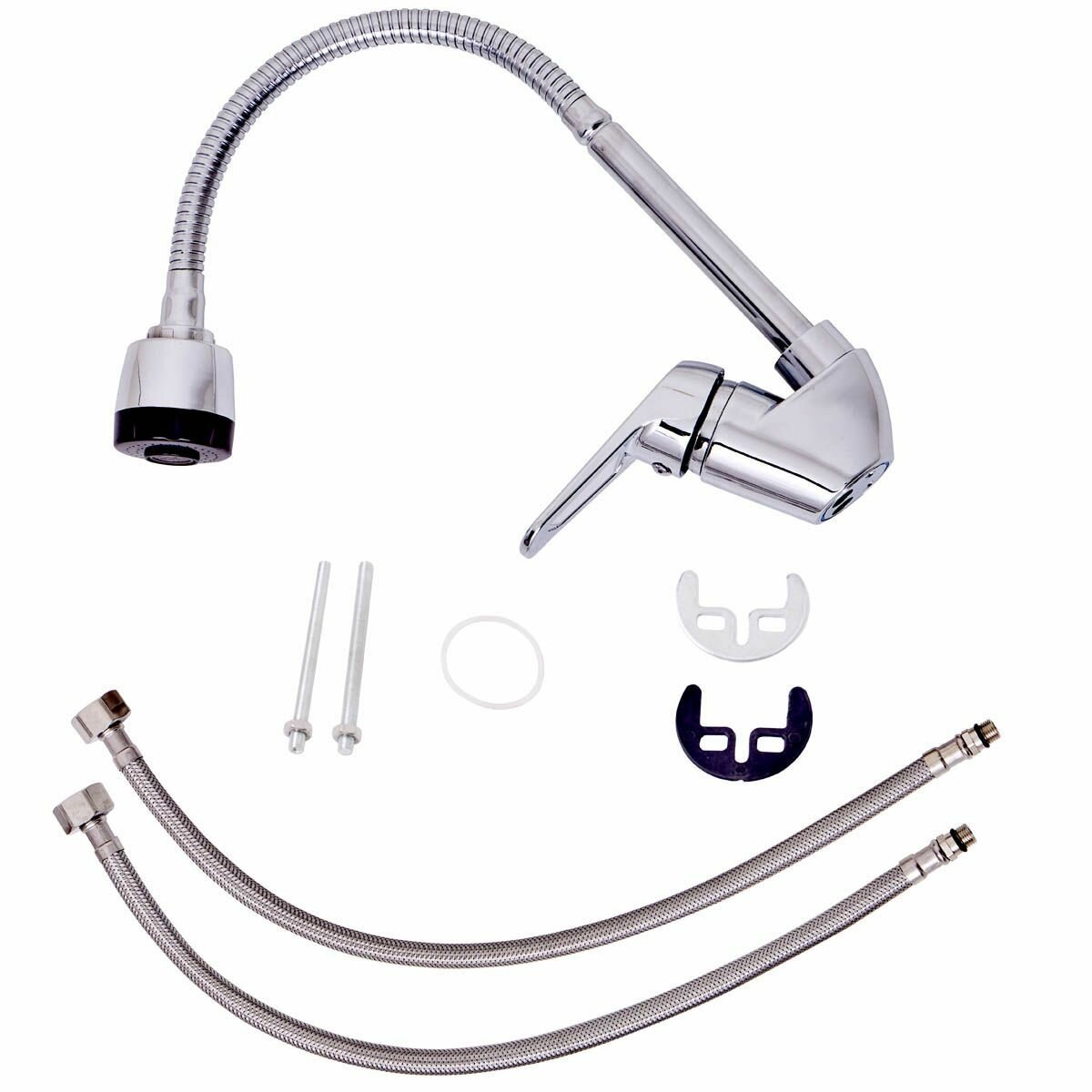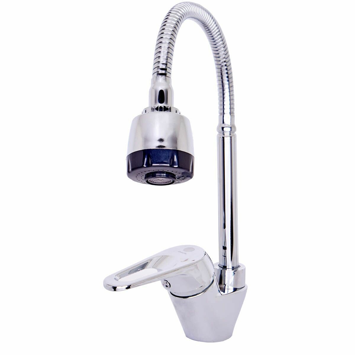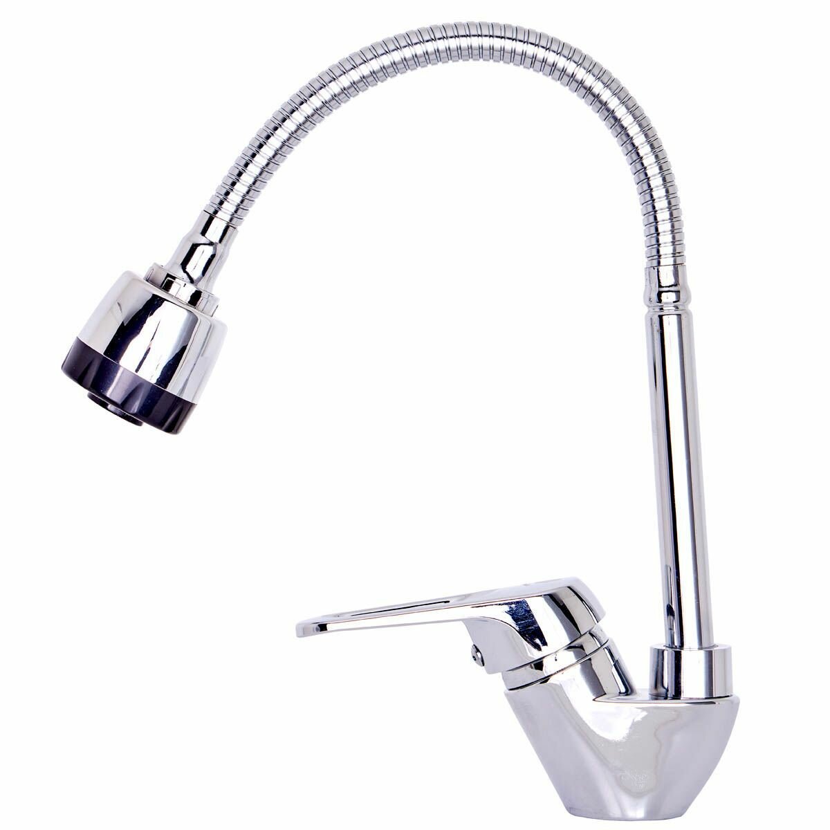 Смеситель для кухни полимерный однорычажный с поворотным гибким изливом 2 режима струи OneLife P11-004cr, хром