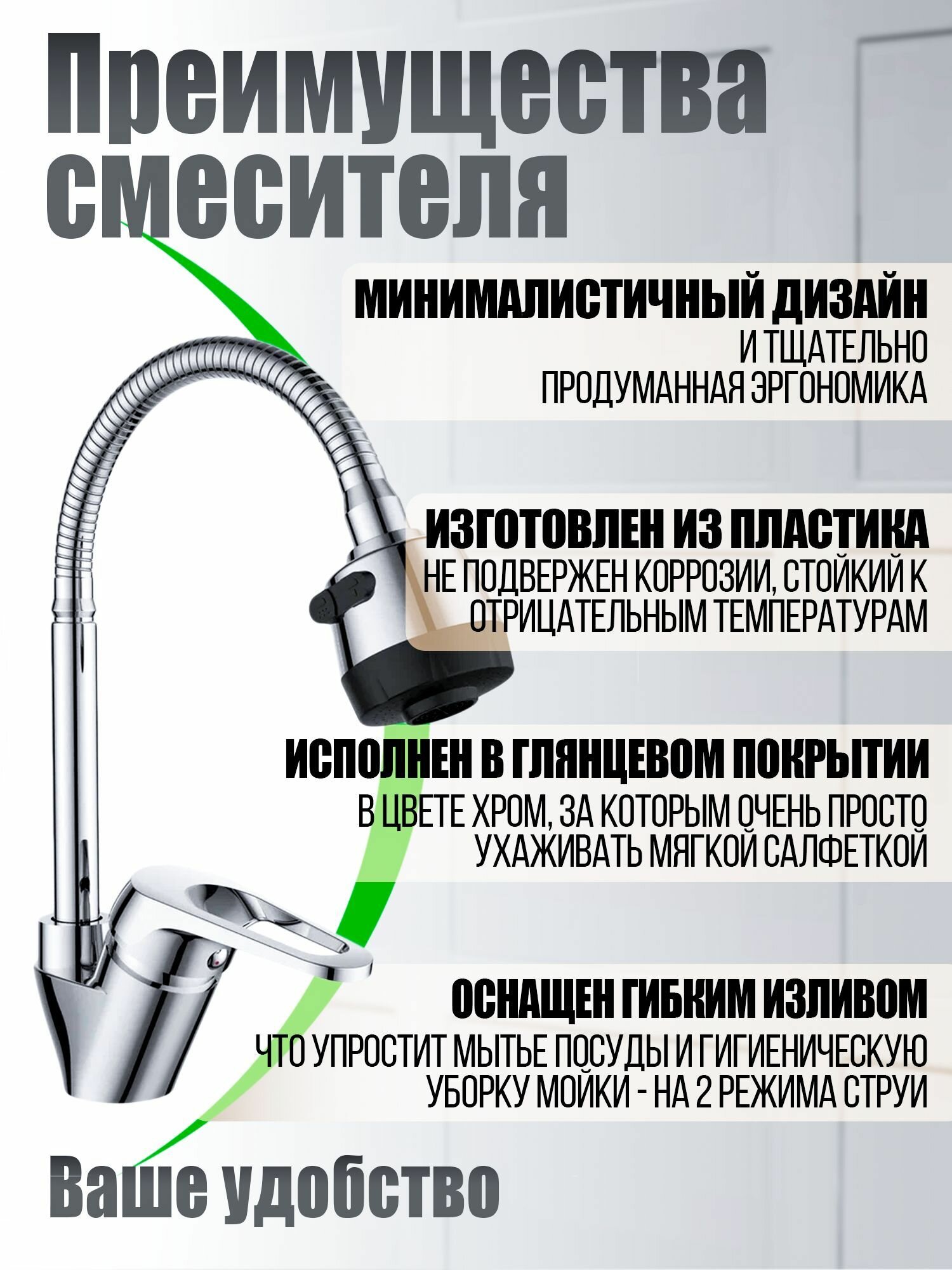 | Отзыв: | Фотография, конечно, не соответствует реальности. На самом деле это модель с гибким изливом. |
