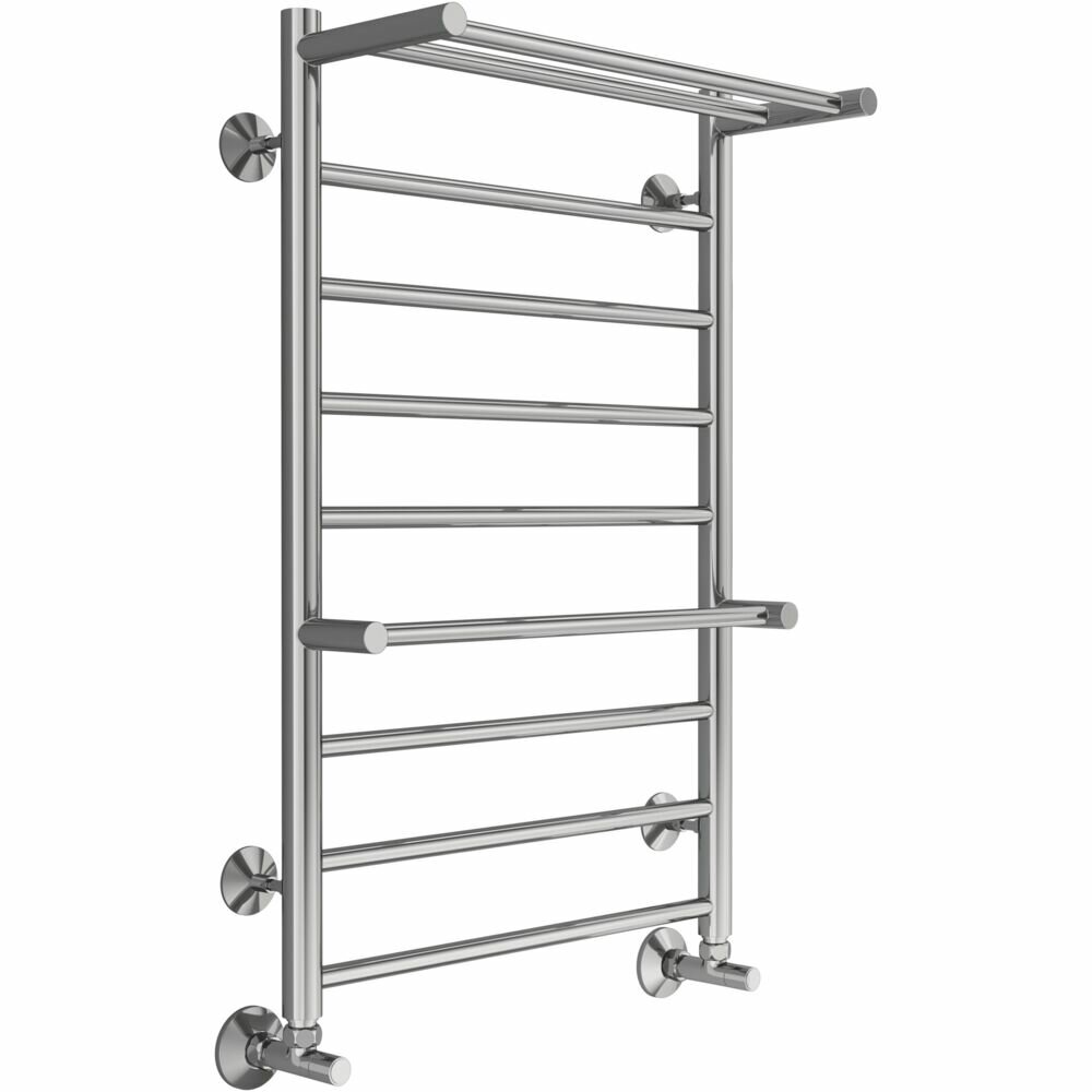 Полотенцесушитель водяной с полкой TERMINUS (Терминус) Анкона П8 500х800 мм, нижнее подключение, сверхпрочная пищевая нержавеющая сталь, технология защиты от электрокоррозии , гарантия 10 лет / Водяной полотенцесушитель для ванной