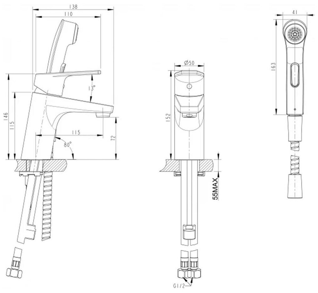 Bravat Смеситель для умывальника с гигиеническим гарнитуром Line F15299C-2 Bravat