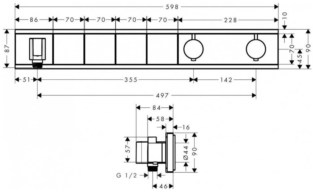 Термостат для ванны Hansgrohe RainSelect 15357000 (внешняя часть)