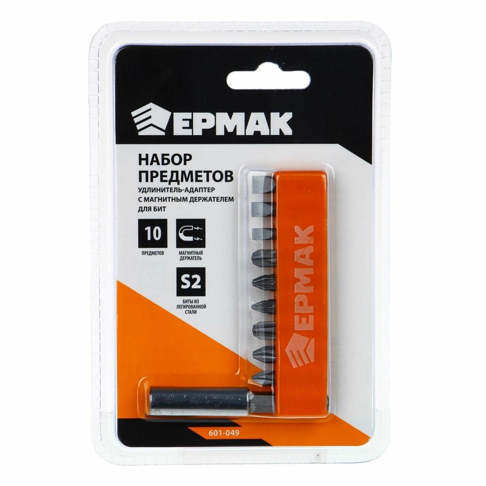 Купить Ермак Набор 10 пр: удлинитель-адаптер с магнитным держателем для бит; 9 бит длиной 25мм