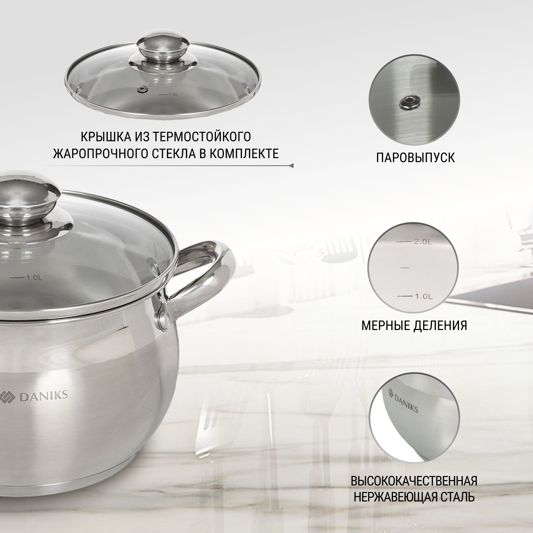 Кастрюля с крышкой DANIKS SD-20 (204073) 3.9л, нержавеющая сталь, стекло