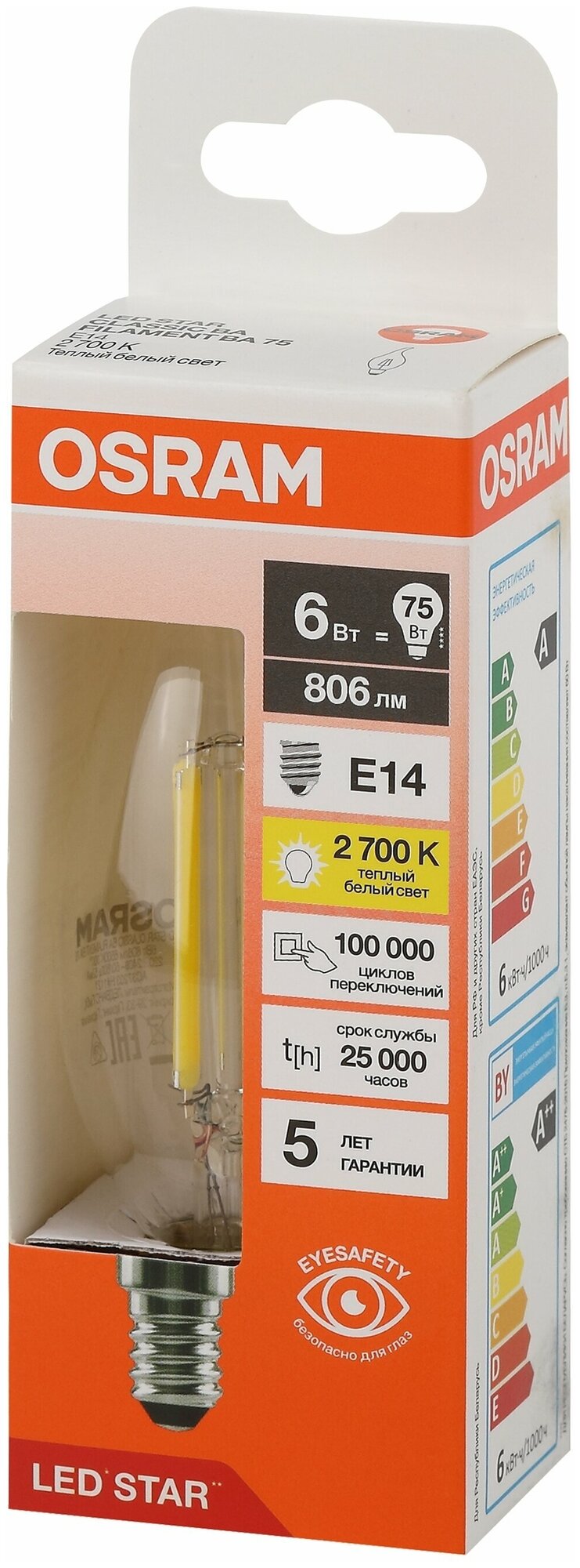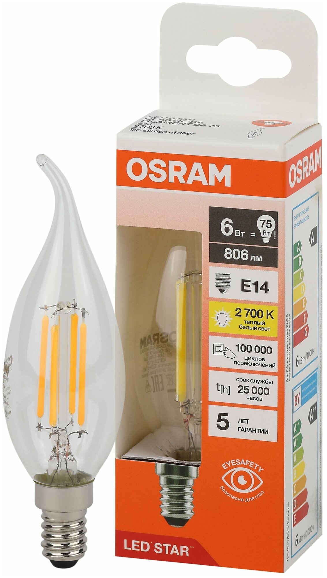 Ниже Вы можете прочитать отзывы на LED STAR CL BA75 6W/827 220-240V FIL CL E14 10X1RU - LED лампа OSRAM, ознакомится с подробными характеристиками, посмотреть интересные обзоры и фотографии на LED STAR CL BA75 6W/827 220-240V FIL CL E14 10X1RU - LED лампа OSRAM.