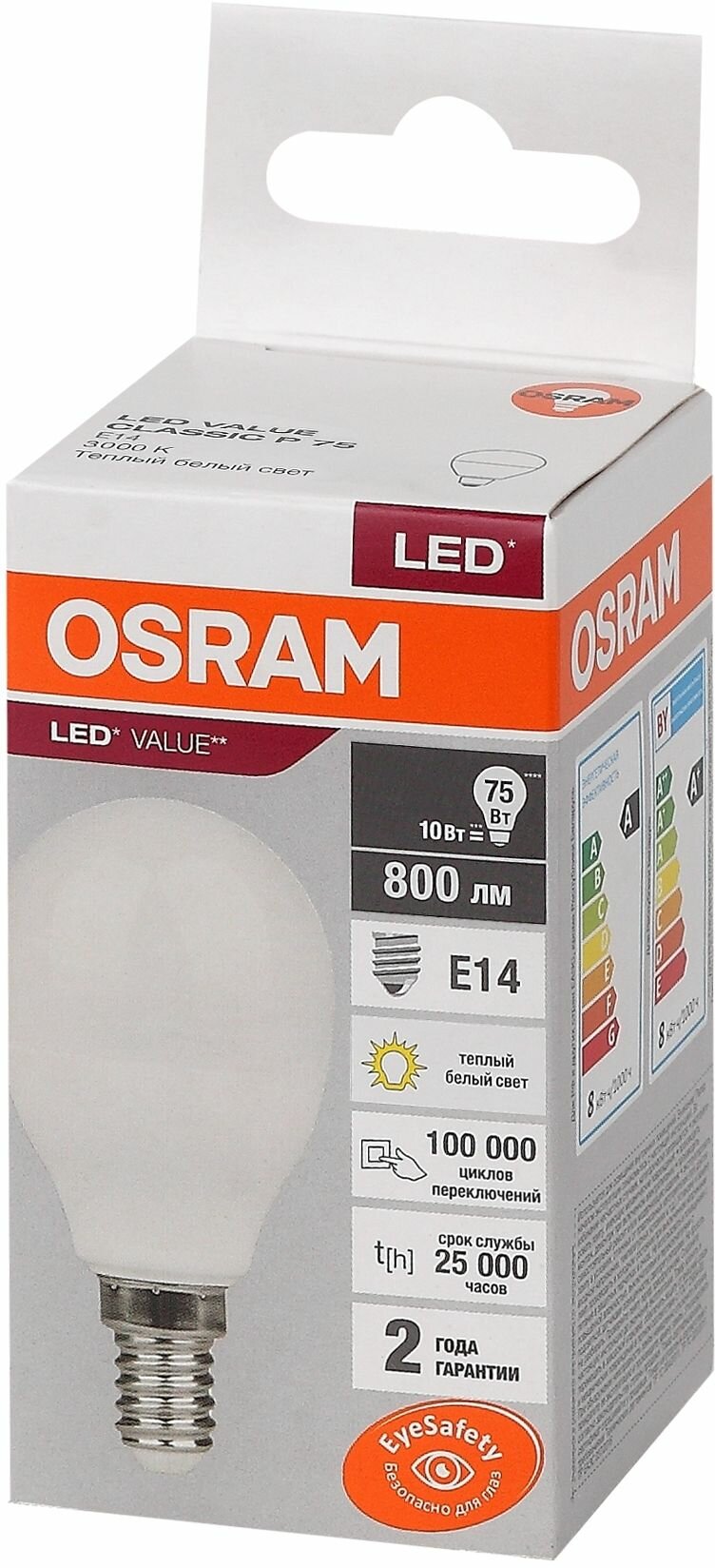 Купить Лампа светодиодная OSRAM LED VALUE CLASSIC P 75 10 W/3000 K E14 4058075579712