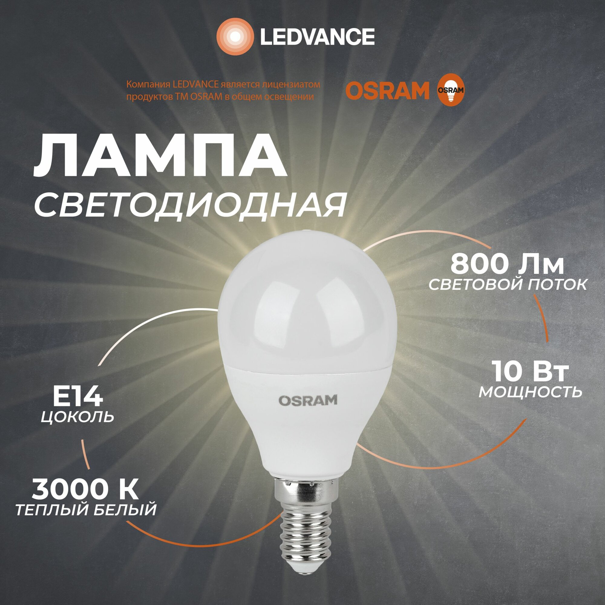 Лампа светодиодная LED Value LVCLP75 10SW/830 10Вт шар матовая E14 230В 10х1 RU OSRAM 4058075579712
