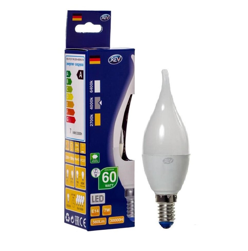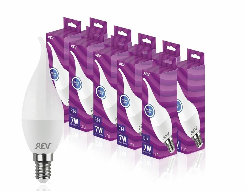 Лампа светодиодная REV 7 Вт E14 свеча на ветру FC37 4000 К дневной свет 230 В матовая