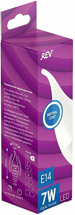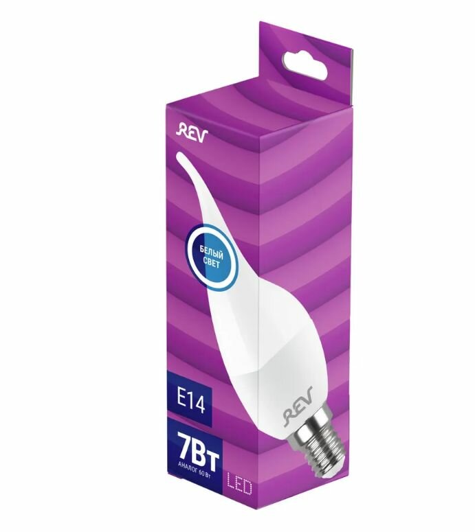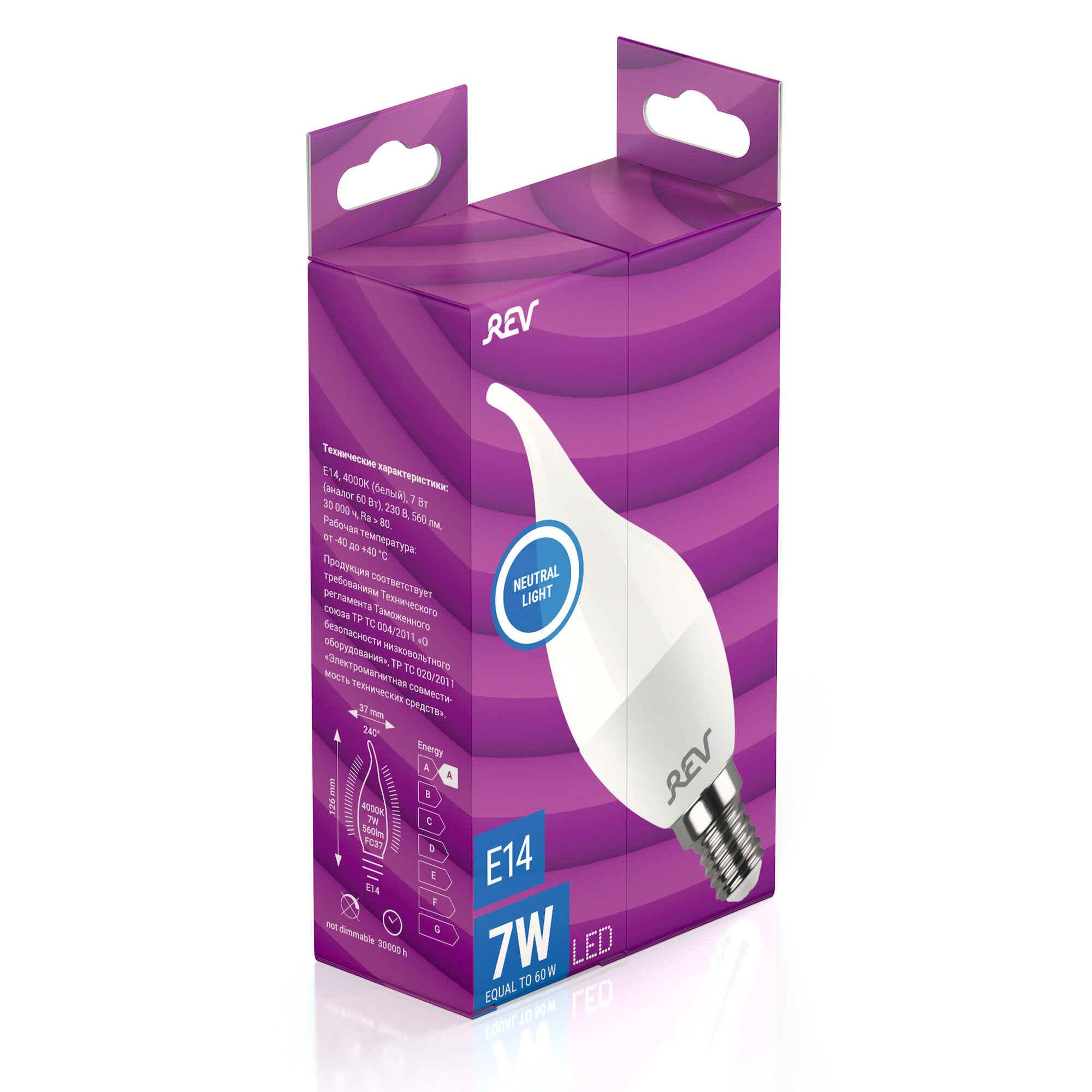 Лампа светодиодная Rev Е14 4000К 7 Вт 220 В свеча на ветру матовая