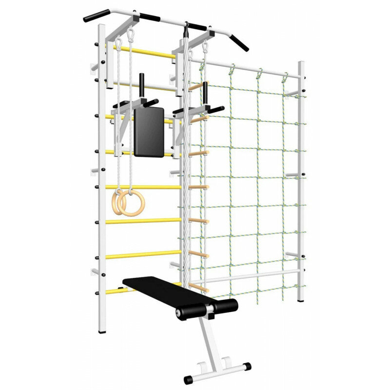 Шведская стенка Sv Sport усиленная 611ж (ступени Желтые / Турник стандарт к ШС / Канат, кольца, лестница / Брусья Sv Sport к ШС / Скамья для пресса и жима к ШС / Комплект с канатным лазом к ШС)