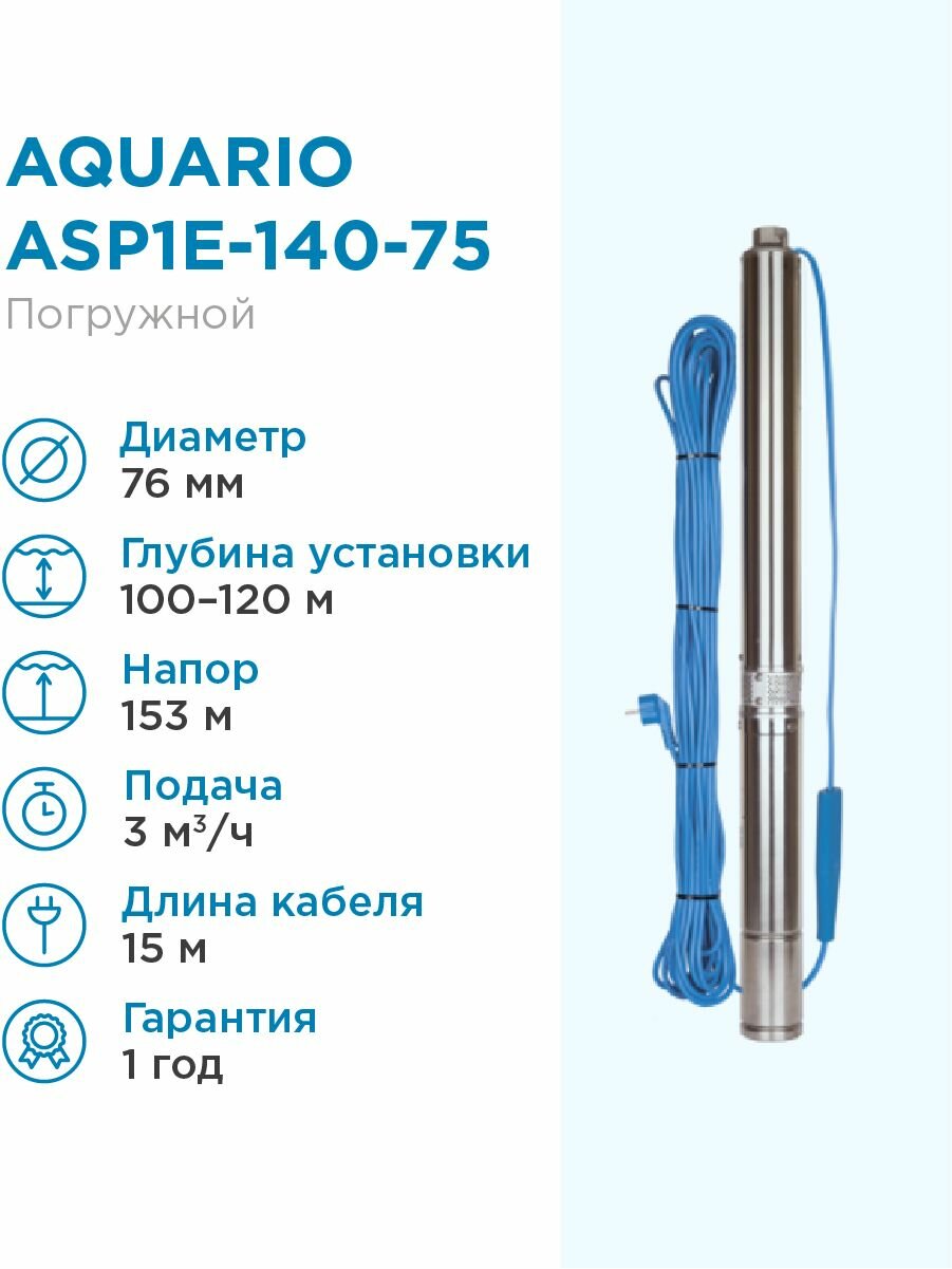 Aquario ASP1E-140 -75 скважинный насос (встр.конд., каб. 1,5м)
