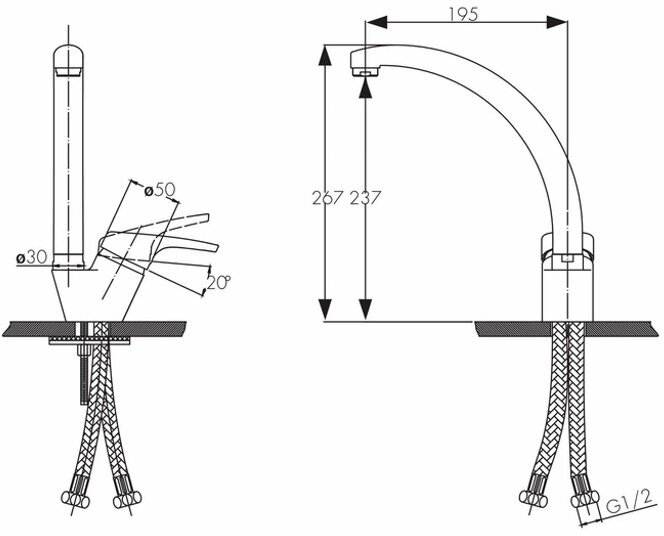 | Присоединительный размер | 1/2" x 1/2" |