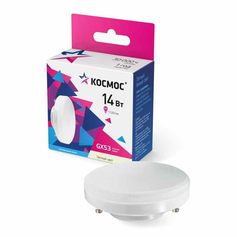 Лампочки светодиодные Космос 14Вт GX53 (аналог 140Вт) Теплый свет, 1 шт.