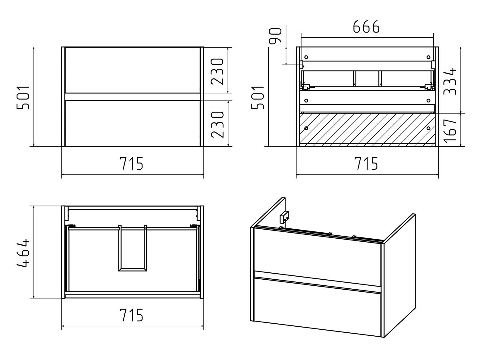 Тумба с раковиной Алиса 75, 2 ящика, подвесная