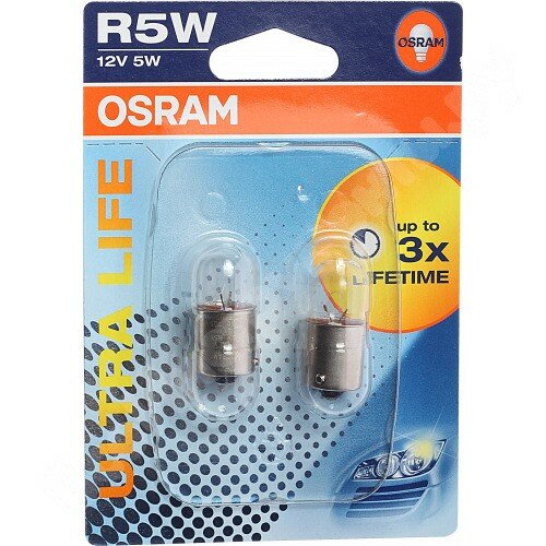 Комплект ламп накаливания блистер 2шт R5W 12V 5W BA15S ULTRA LIFE (в 3 раза увеличен срок службы по сравнению со стандартной лампой), 5007ULT02B OSRAM 5007ULT-02B