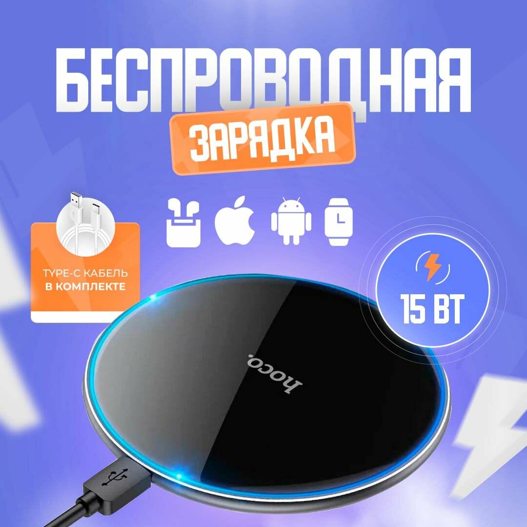 Беспроводное зарядное устройство HOCO CW6 Pro Easy / Беспроводная быстрая зарядка 15W 5V-2A/ 9V-2A черный