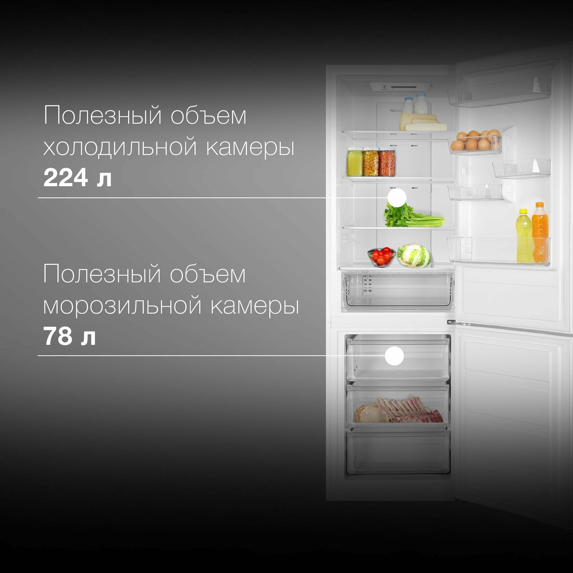 | Объем холодильной камеры | 224 л |