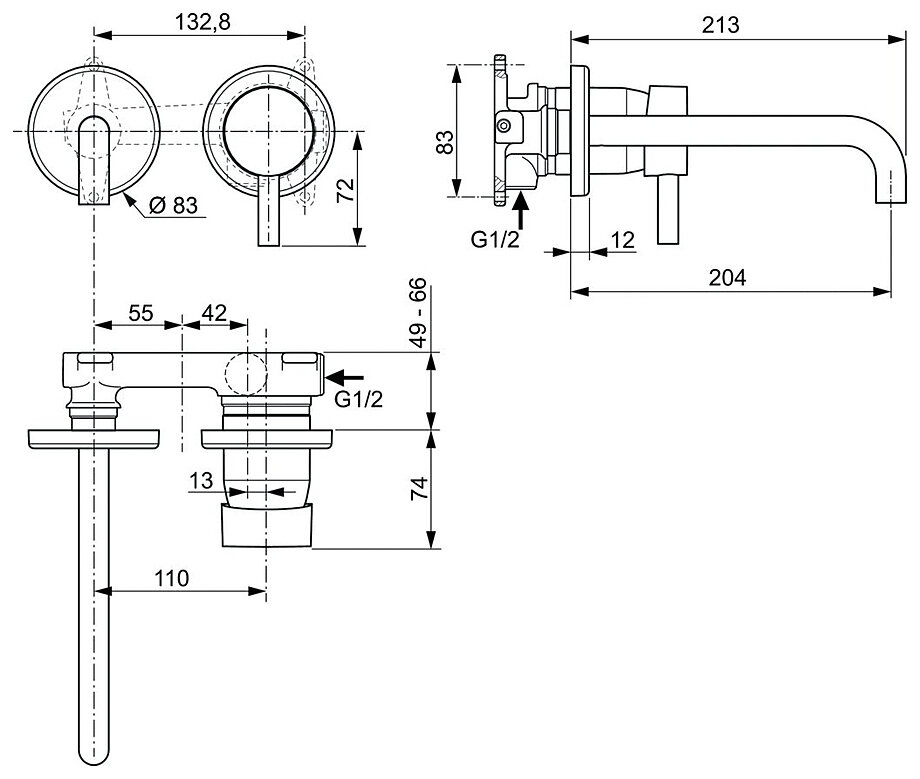 Смеситель для раковины Ideal Standard Ceraline встраиваемый, для механизма A5948NU (A6938AA)