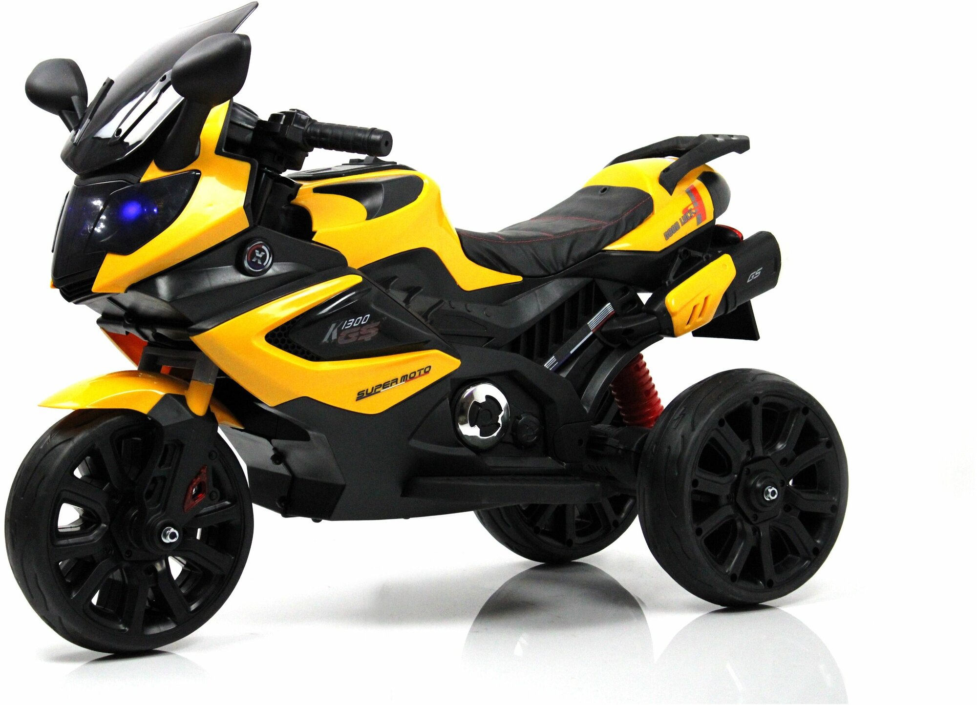 | Отзыв: | Супер трицикл, могла бы поставила 10 звёзд. Выглядит очень натурально и круто. Две скорости вперёд и 2 скорости назад. Едит хорошо, для детей поменьше можно на 1 скорости, на 2 уже веселее. Фара светится голубым, Музыка хорошая, можно флешку с детскими песнями. Звук можно громче и тише сделать, что огромный плюс. Рекомендую к покупке. Пластик прочный, ручки руля резина |