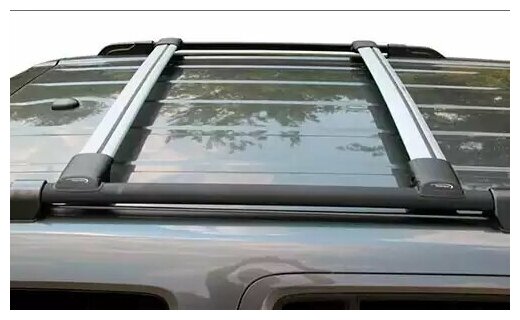 Автомобильный багажник R46-S на рейлинги (серебристый) на 7 моделей автомобилей