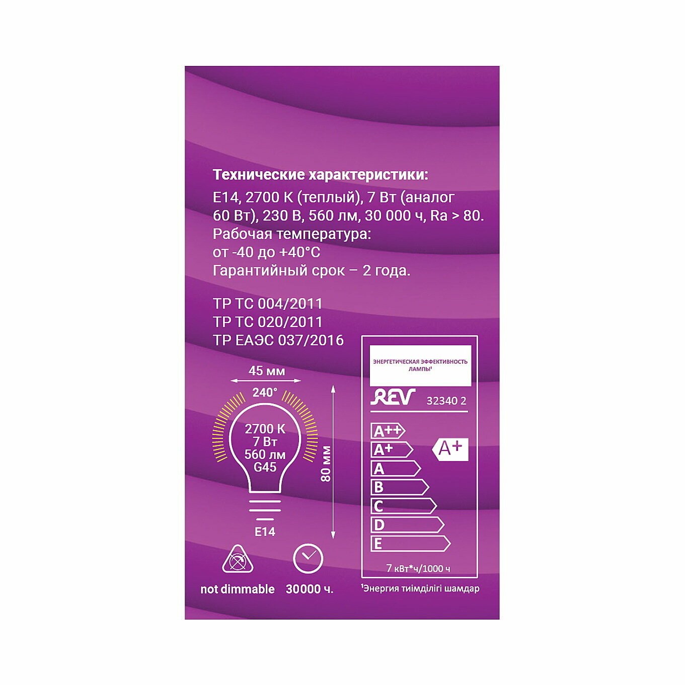 Лампочка REV 32340 G45 7 Вт, Е14, белый интересное: