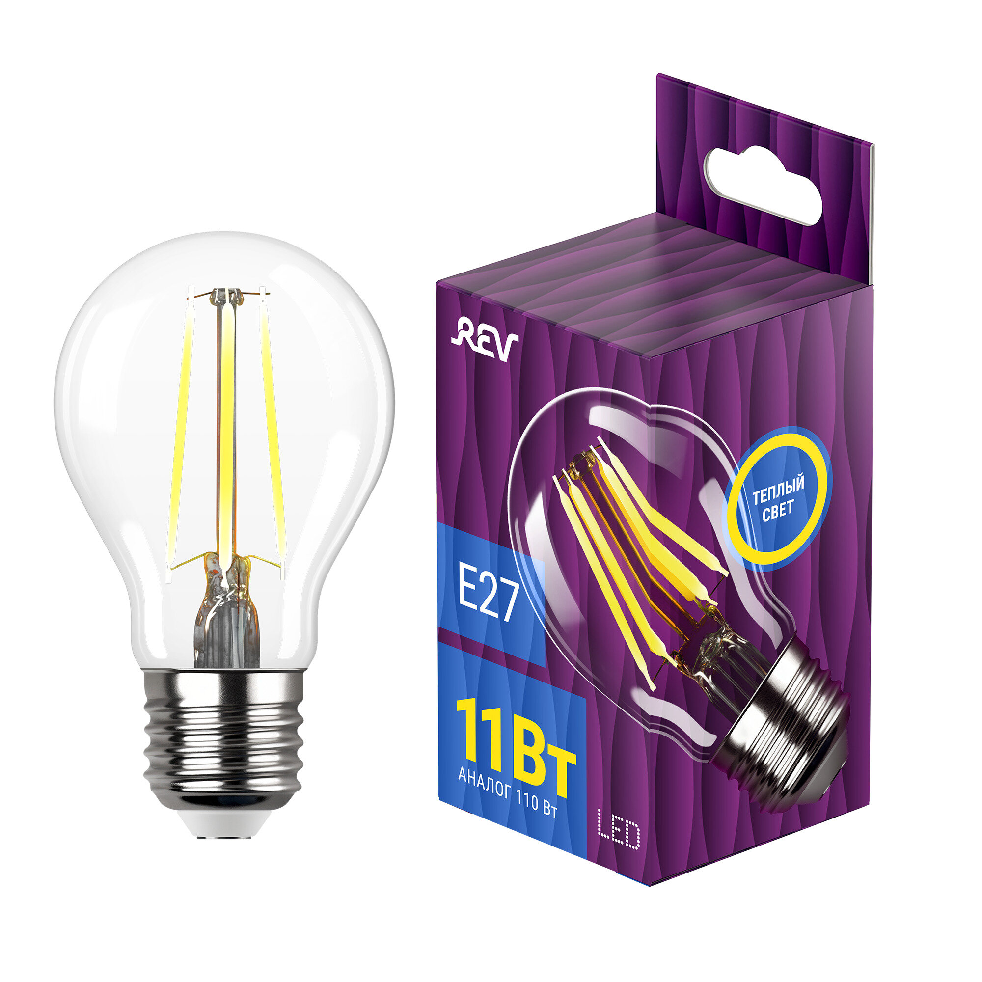 REV (32477 5) LED FILAMENT груша A60 E27 11W, 2700K, DECO Premium, теплый свет