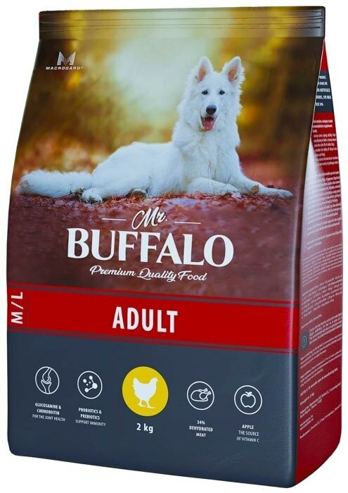 Сухой корм для собак Mr.BUFFALO Adult M/L с курицей 1 уп. х 1 шт. х 2 кг (для средних и крупных пород)