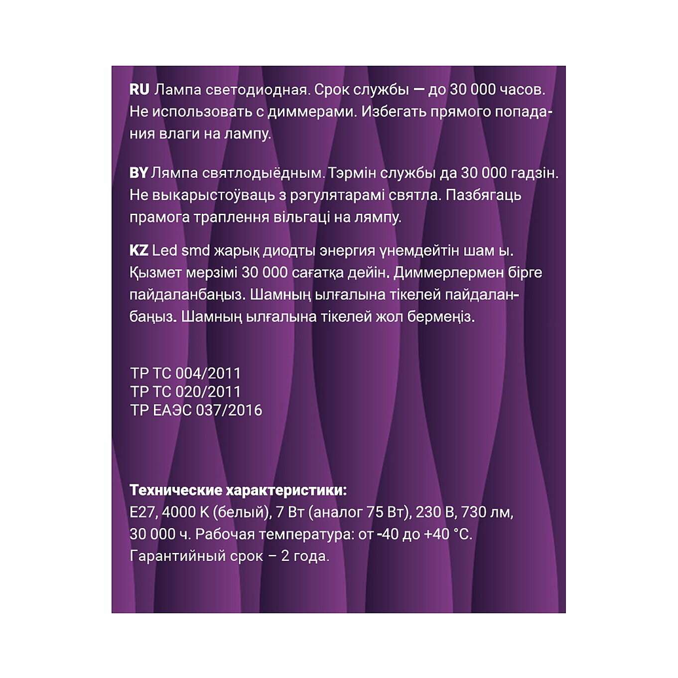 | Срок службы | 30000 ч |
