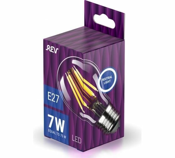 REV Лампа светодиодная LED A60 E27 7W 730Лм, 4000K, PREMIUM FILAMENT, холодный свет , 32354 9