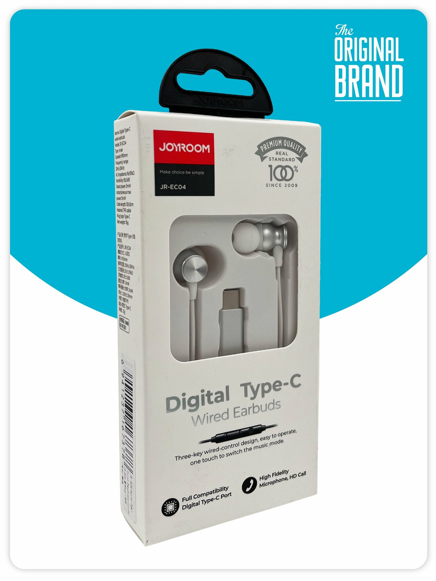 Проводные внутриканальные цифровые Type-C наушники с микрофоном JOYROOM JR-EC04 Серебристые