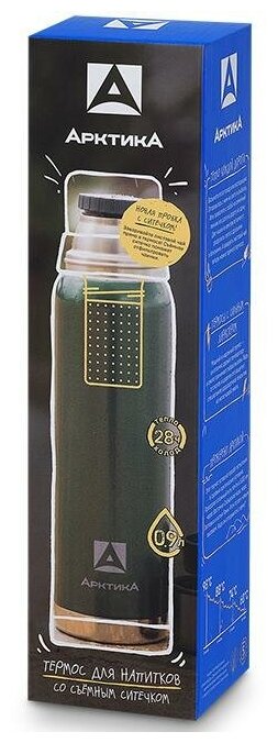 Термос Арктика с ситечком 106-900C, 900 мл., зелёный, 28ч