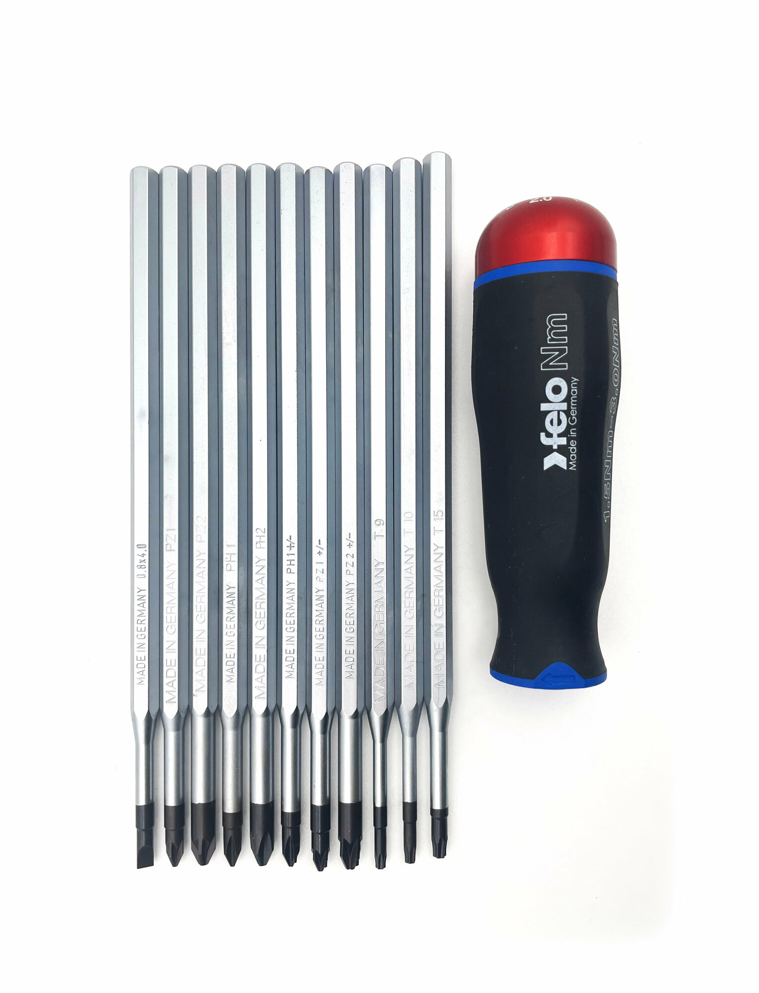 10099716 Felo Отвертка динамометрическая Серия Nm 1,5-3,0 с набором насадок 12 шт в кейсе plus/minus .
