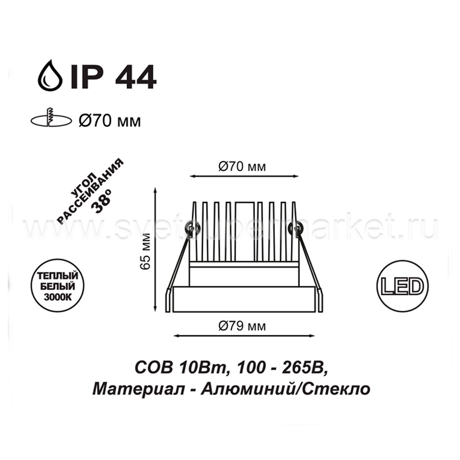 Светильник светодиодный встраиваемый Novotech 357909 METIS