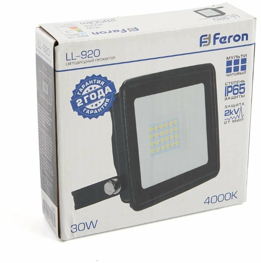 Светодиодный прожектор LL-920 IP65 30W 4000K, FERON 29495 (1 шт.)