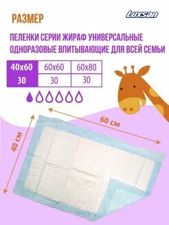 Пеленки впитывающие Luxsan универсальные серия "Жираф" 40х60, 30шт интересное: