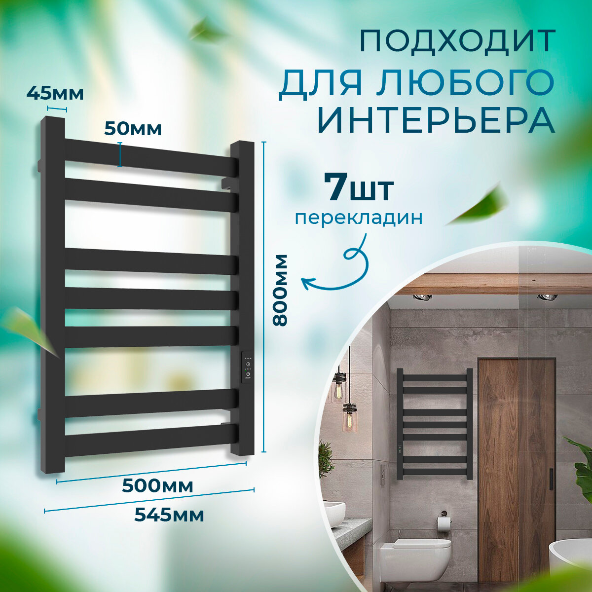 Полотенцесушитель электрический Laris Гефест ЧКЧ П7 500мм 800мм черный матовый муар правое подключение с таймером и терморегулятором интересное: