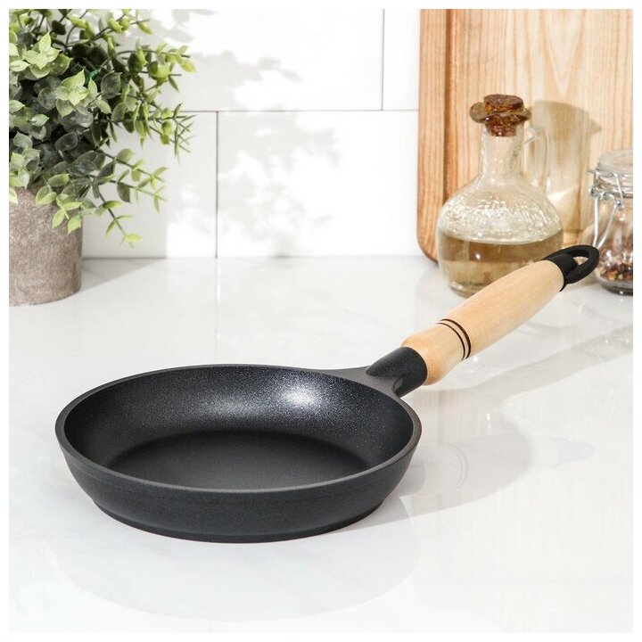 KUKMARA Сковорода, d=18 см, деревянная ручка, антипригарное покрытие, цвет чёрный