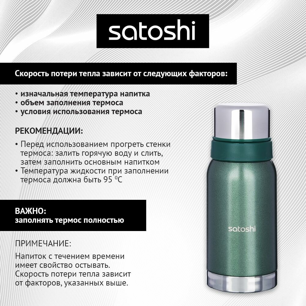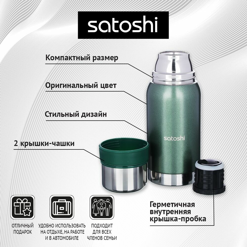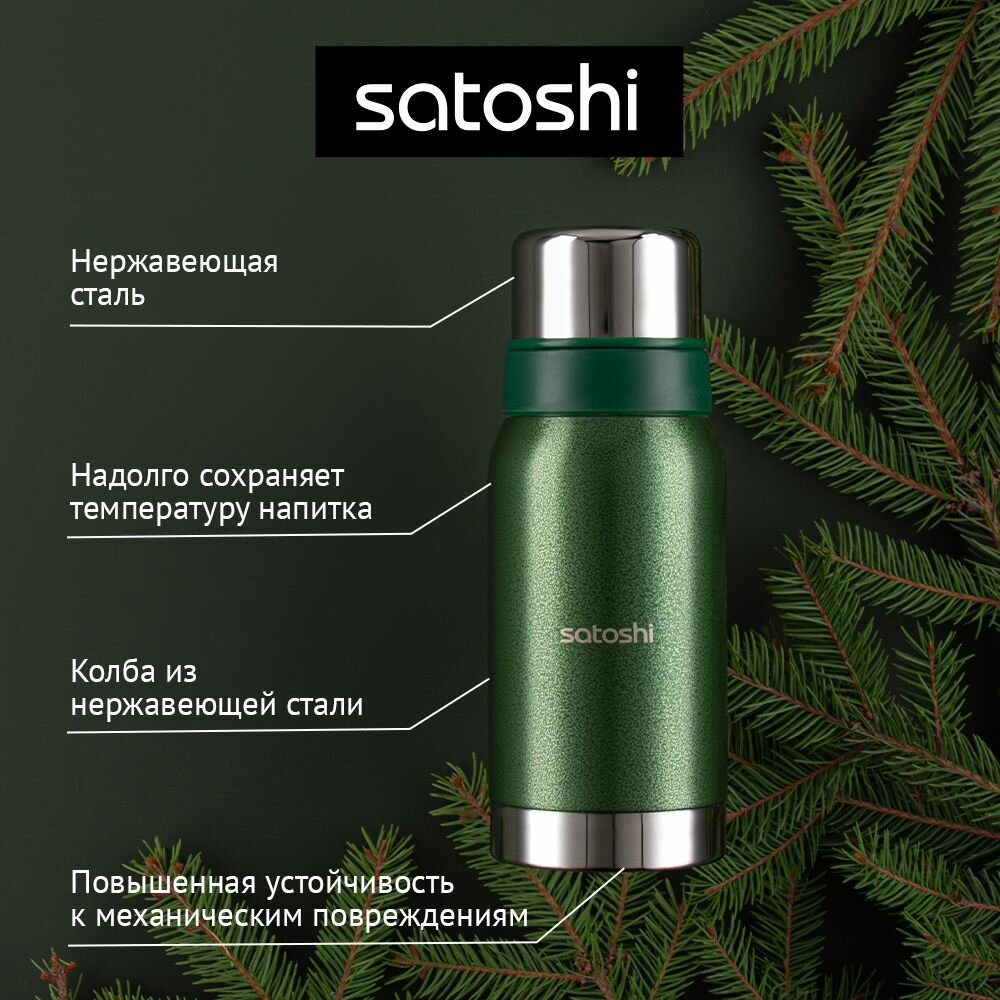 Термос SATOSHI "Монте", 0,85 л для напитков, нержавеющая сталь, зелёный