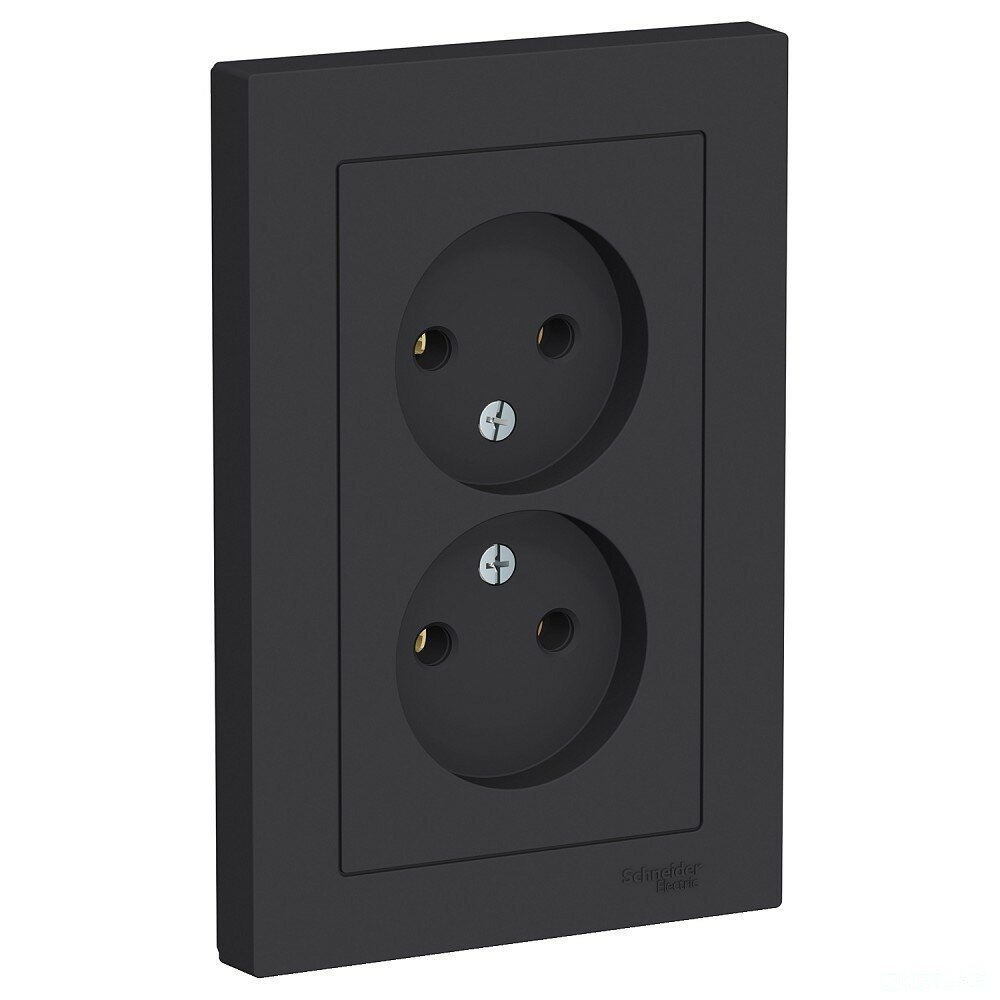 Розетка электрическая двухместная Systeme Electric Atlas Design без заземления в сборе 16А, Карбон ATN001020 - 4 шт.