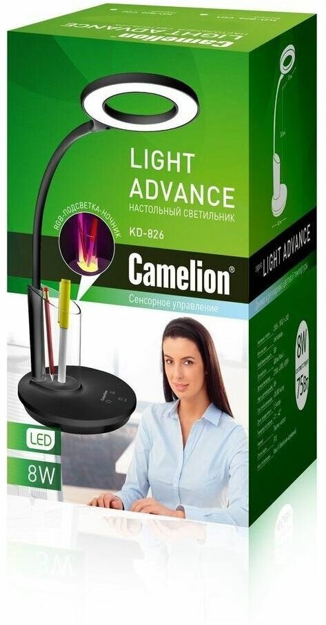 Светильник настольный CAMELION KD-826 Light Advance 14146 светодиодный, черный, 220В, 8Вт