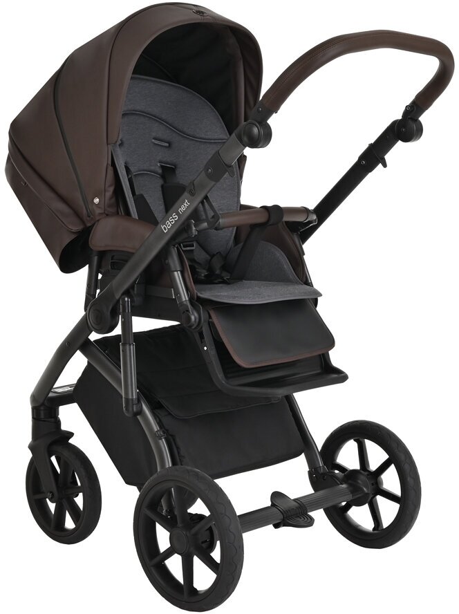 Купить Коляска 2 в1 Roan Bass Next Кожа Chocolate/Black/руч.Тем.коричневый