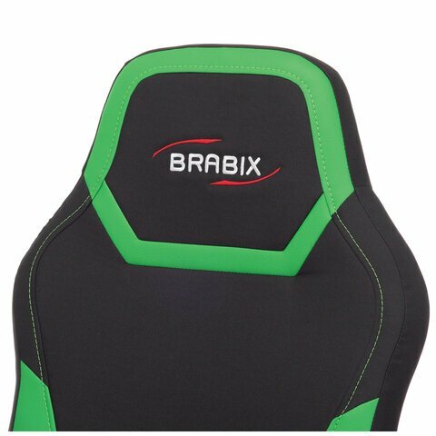 Кресло компьютерное BRABIX "Alpha GM-018", ткань/экокожа, черное/зеленое, 532639, GM-018_532639