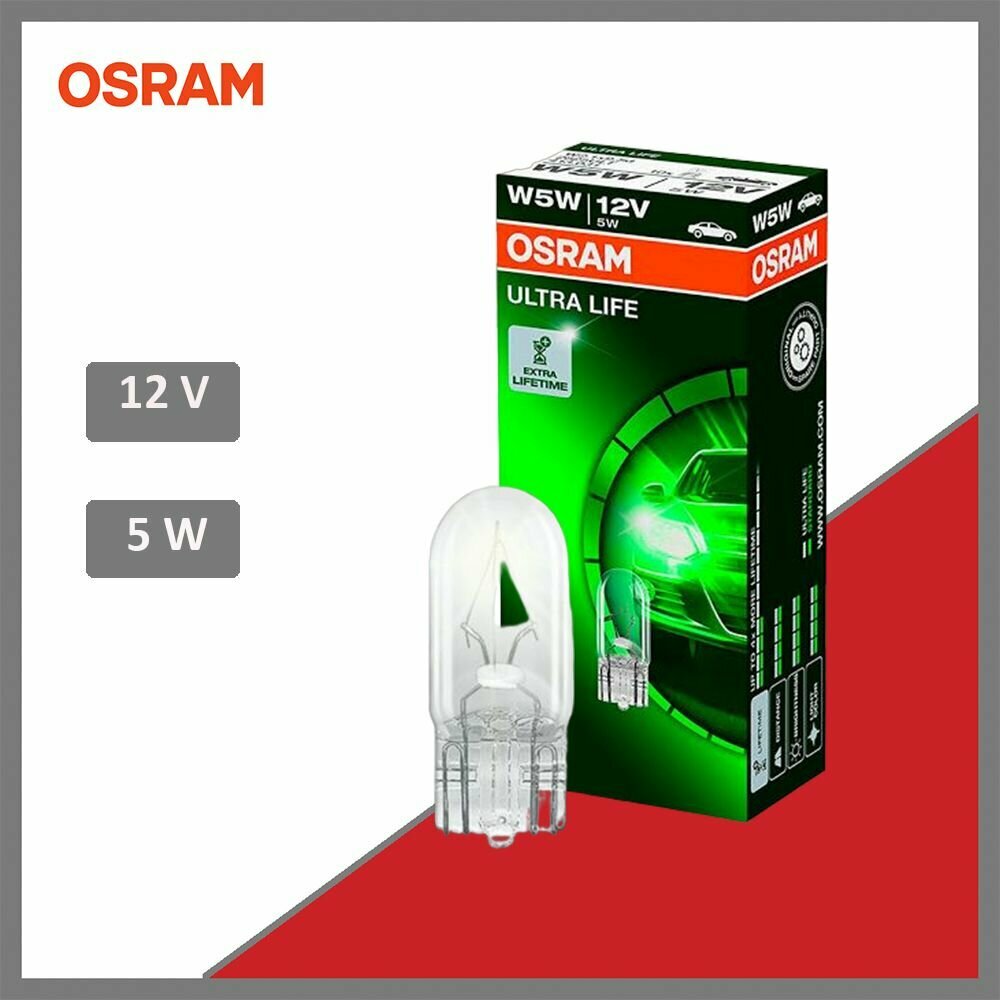 OSRAM Лампа W5W W2.1x9.5d 12V 5W ULTRA LIFE 2825ULT/ 1 шт.