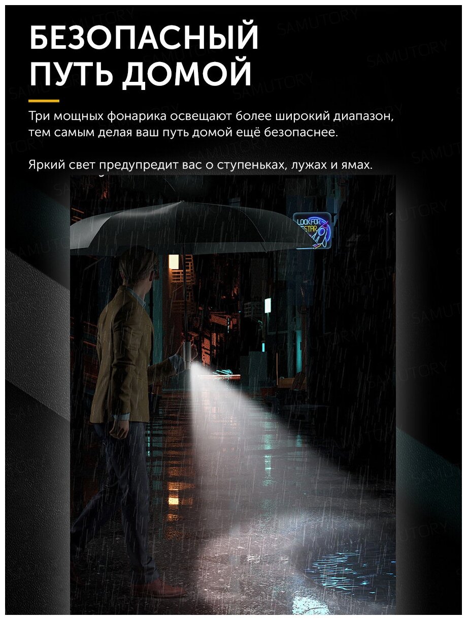 Зонт Mi Zuodu Smart с фонариком (Черный) интересное:
