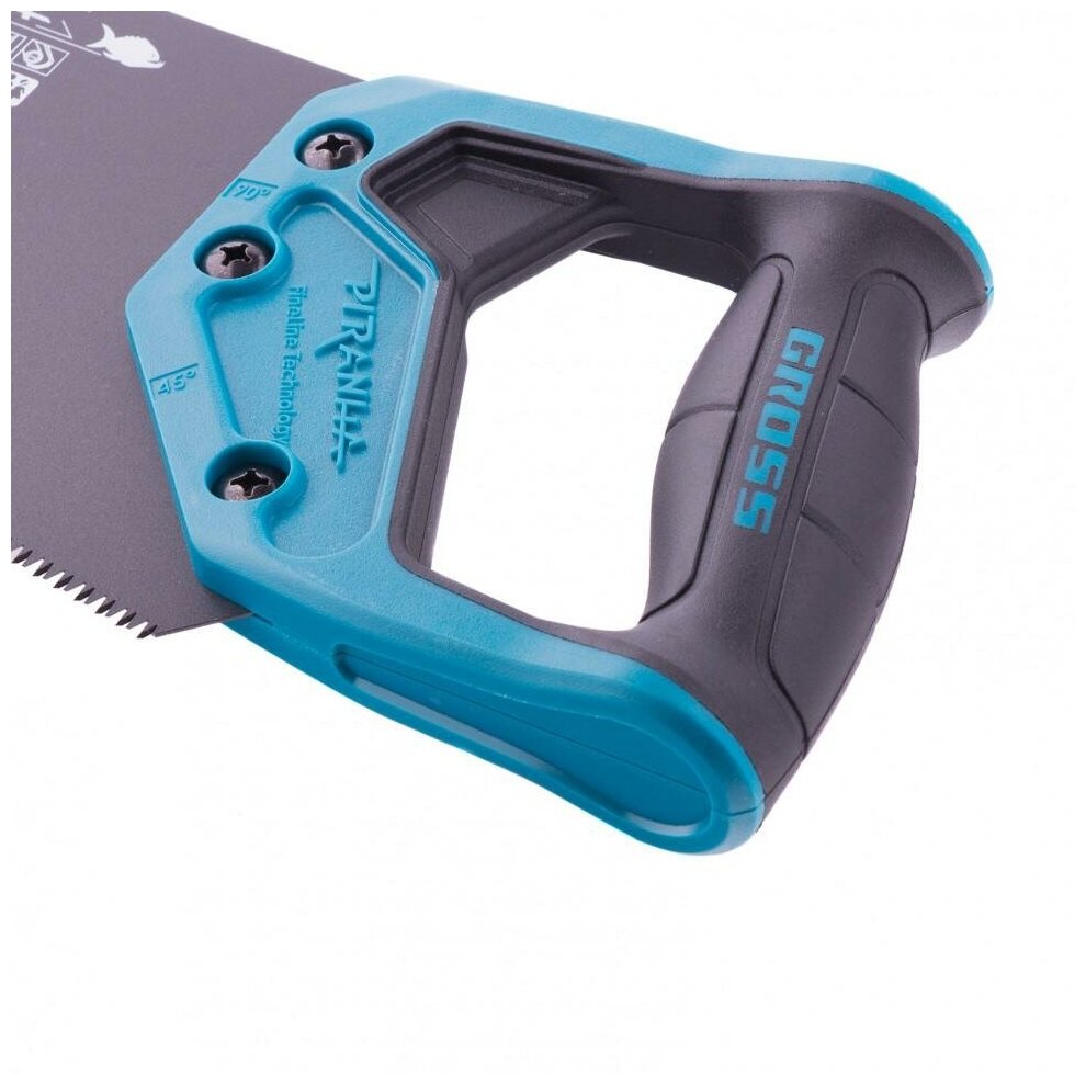 Ножовка по дереву Piranha, 450 мм, 11-12 TPI, зуб-3D, калёный зуб, тефлоновое покрытие полотна, 2-х комп. рук-ка GROSS