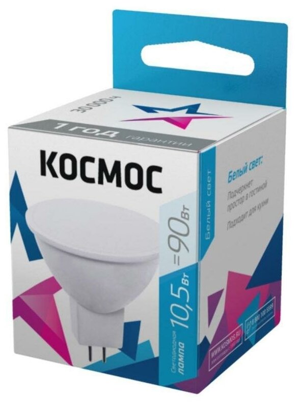 Светодиодная лампа Космос, 10.5 Вт, GU 5.3, 4500 K, LED10.5wJCDRC45, нейтральный белый