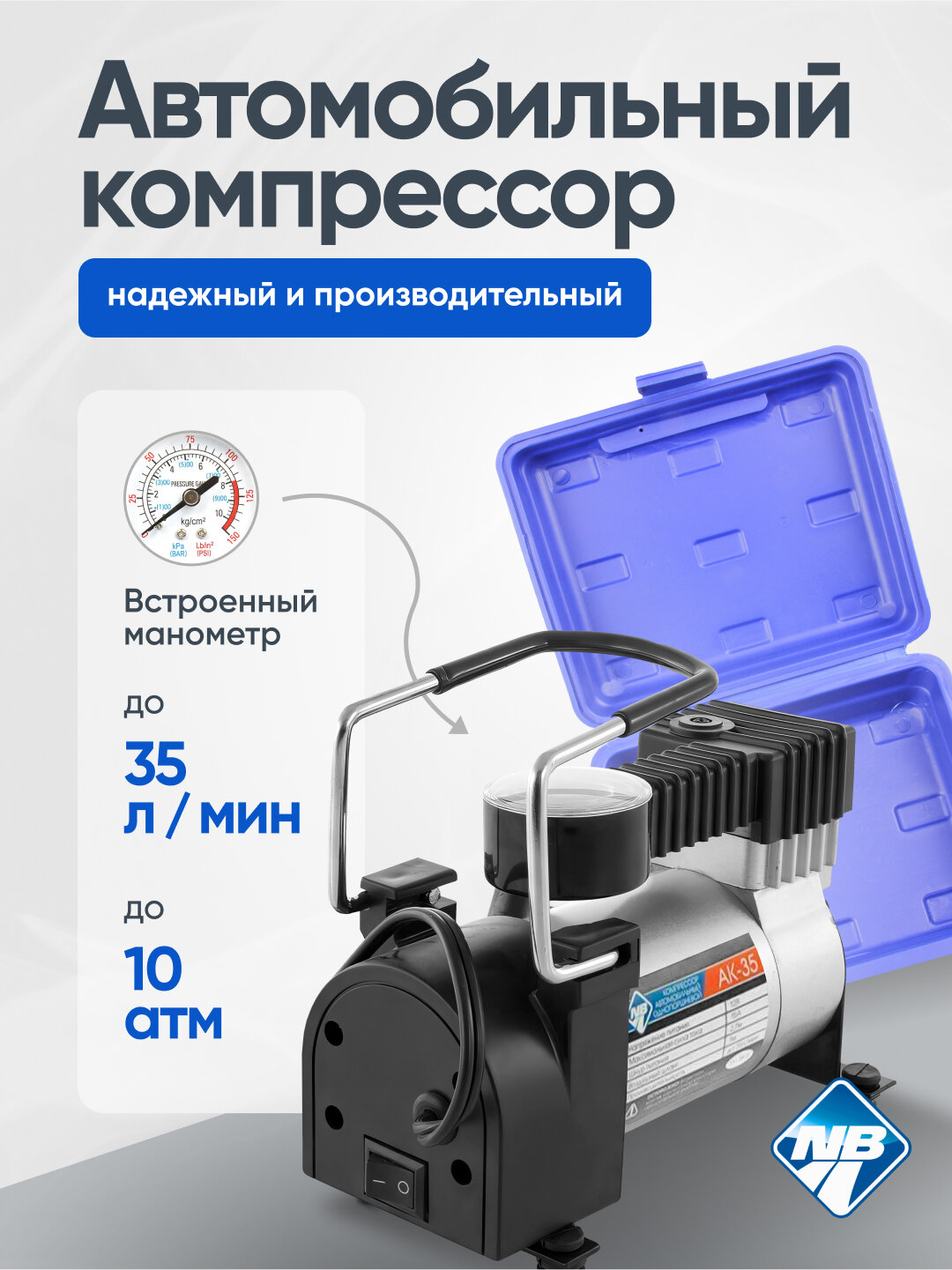 Компрессор автомобильный NOVA BRIGHT АК-35 металл. корпус, пластик.кейс 47159
