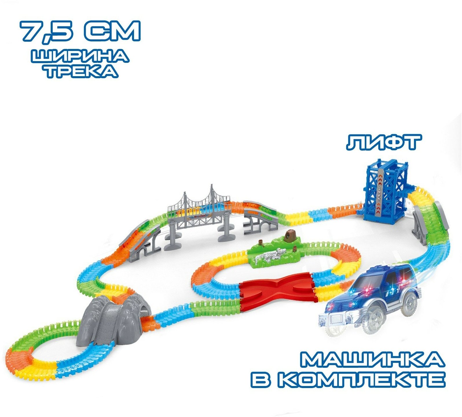 Купить Автотрек "Магический Трек", гибкий, светится в темноте, 261 деталь, лифт