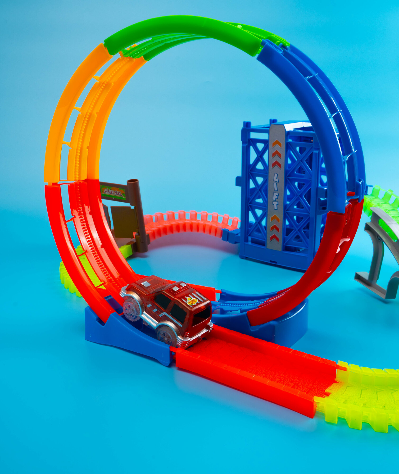 Купить Автотрек "Магический Трек", гибкий, светится в темноте, 133 детали, лифт, мертвая петля