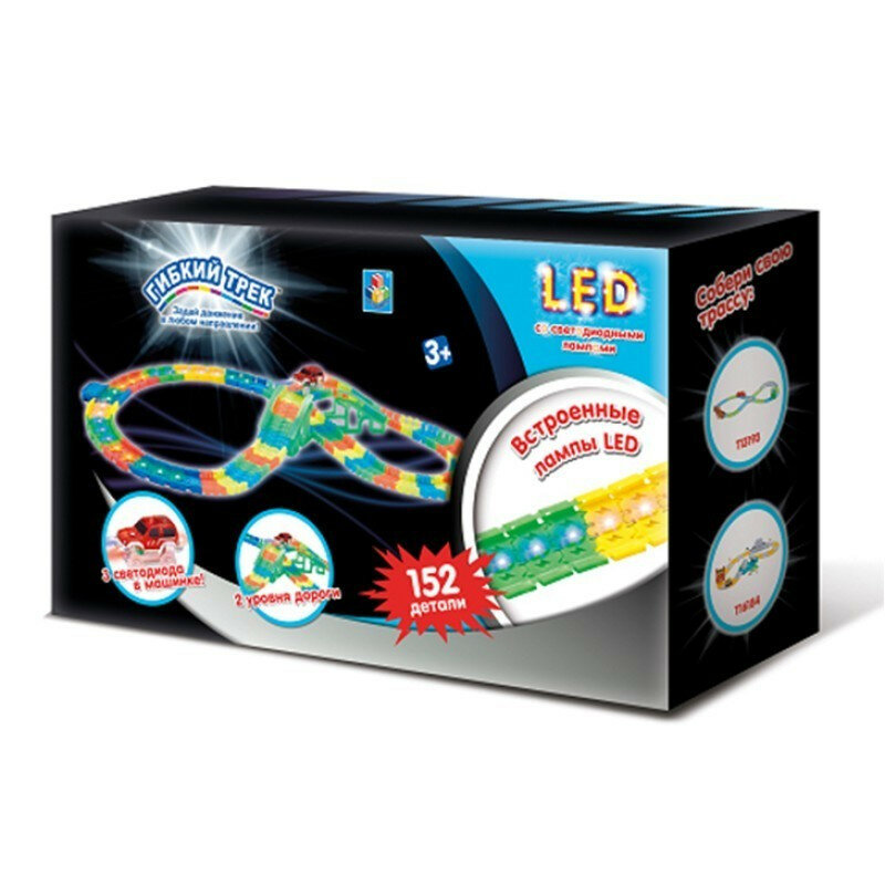 Игровой набор 1TOY Гибкий трек "LED со светодиодными лампами" 152 детали