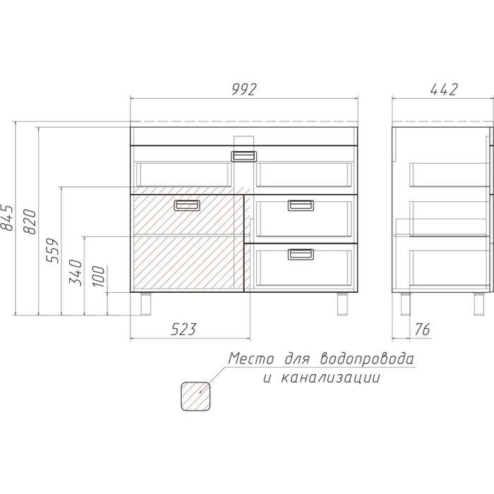 Тумба под умывальник "Elen 100" Cube с 3 верхними ящиками Домино интересное: